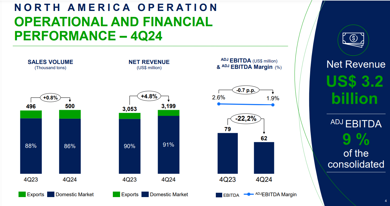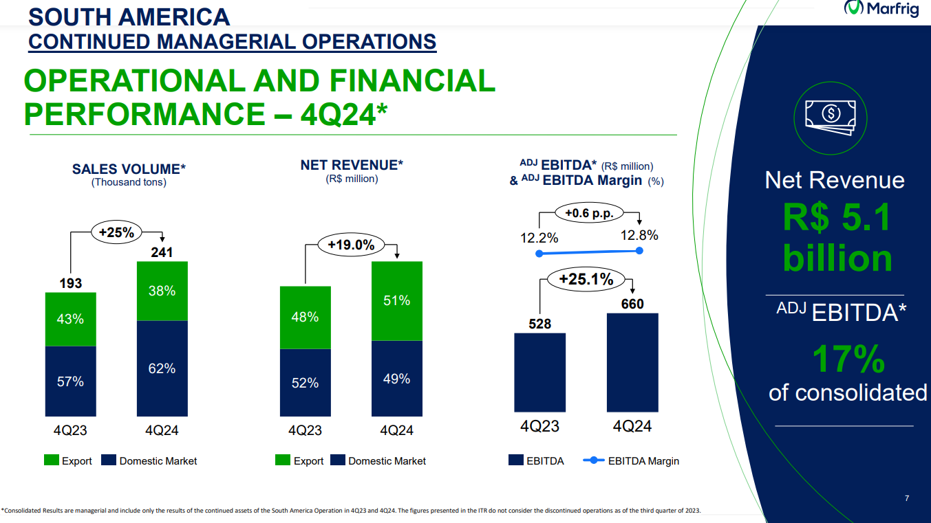南美业务持续扩张,净收入51.45亿巴西雷亚尔,同比增长18.9%,主要受销量增长和出口市场需求推动。