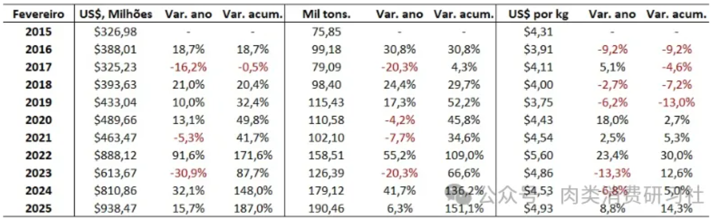 历史上,受公共假期和季节性工厂停工影响,12月和1月通常是牛肉出口淡季,但近期趋势显示12月贸易已与年中其他月份同样繁忙。新日历年度配额重置(产品可暂存保税仓库至1月1日)或许是上月贸易激增的部分原因,同时一些出口商可能为规避新年关税/配额影响,在12月加大了对华出口。