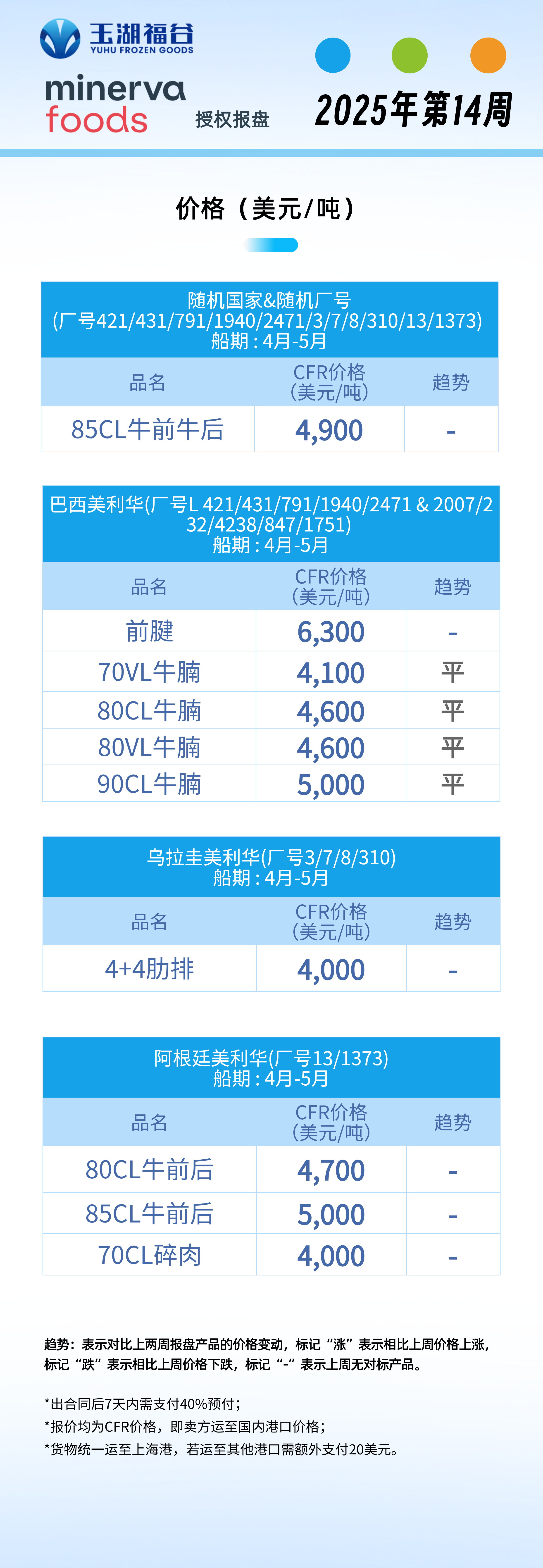 【授权报盘】Minerva牛肉期货报盘 2025年第14周