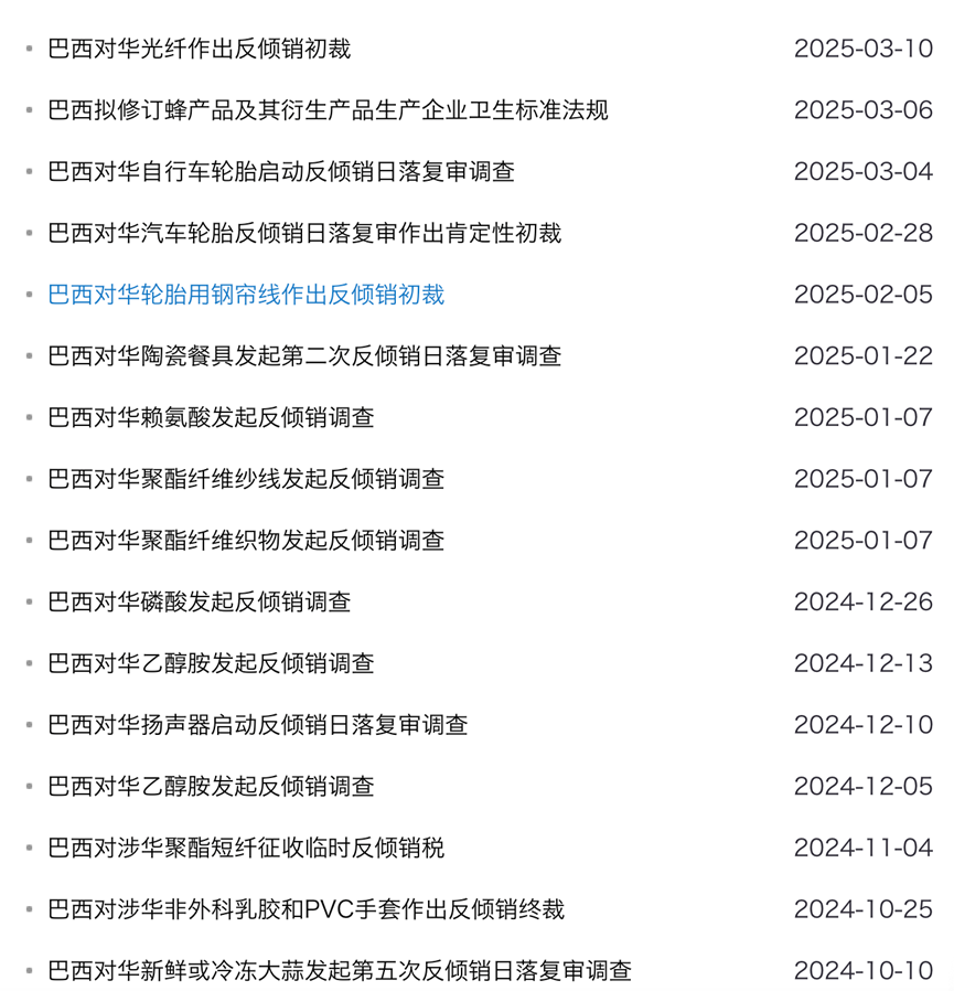 ♢  针对巴西近三年对中国商品发起的多起反倾销调查(涉及钢铁、化工等重点行业),此次调查可视作精准的贸易政策对等响应。