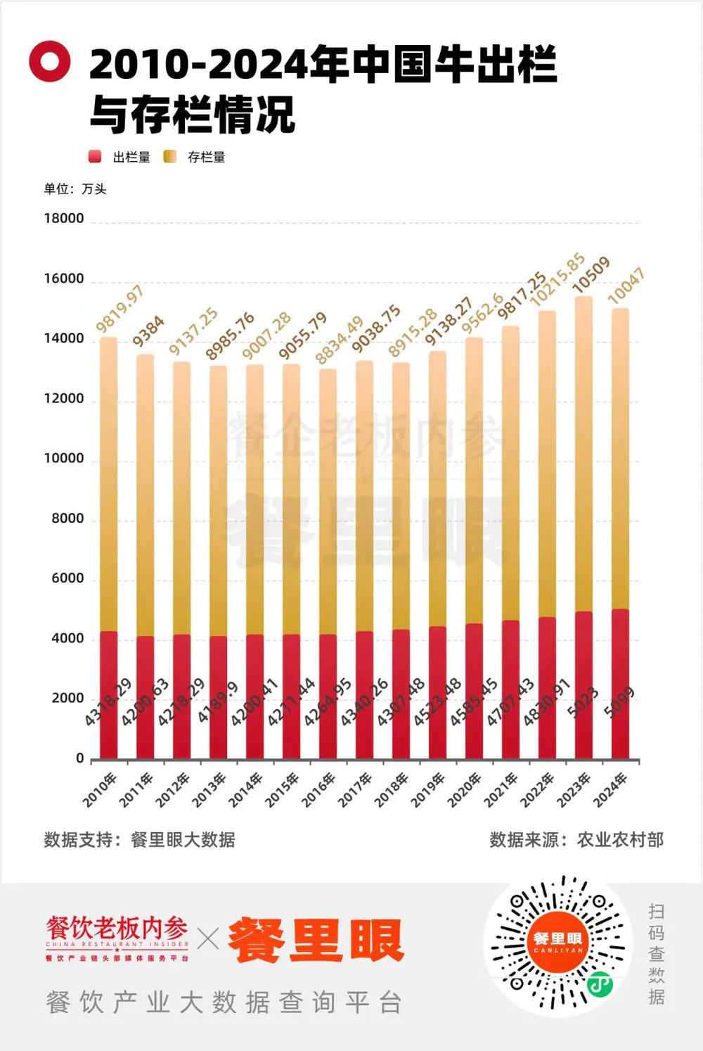 ▶ 库存积压:2024年进口牛肉库存创纪录(290万吨),通缩下消化缓慢。